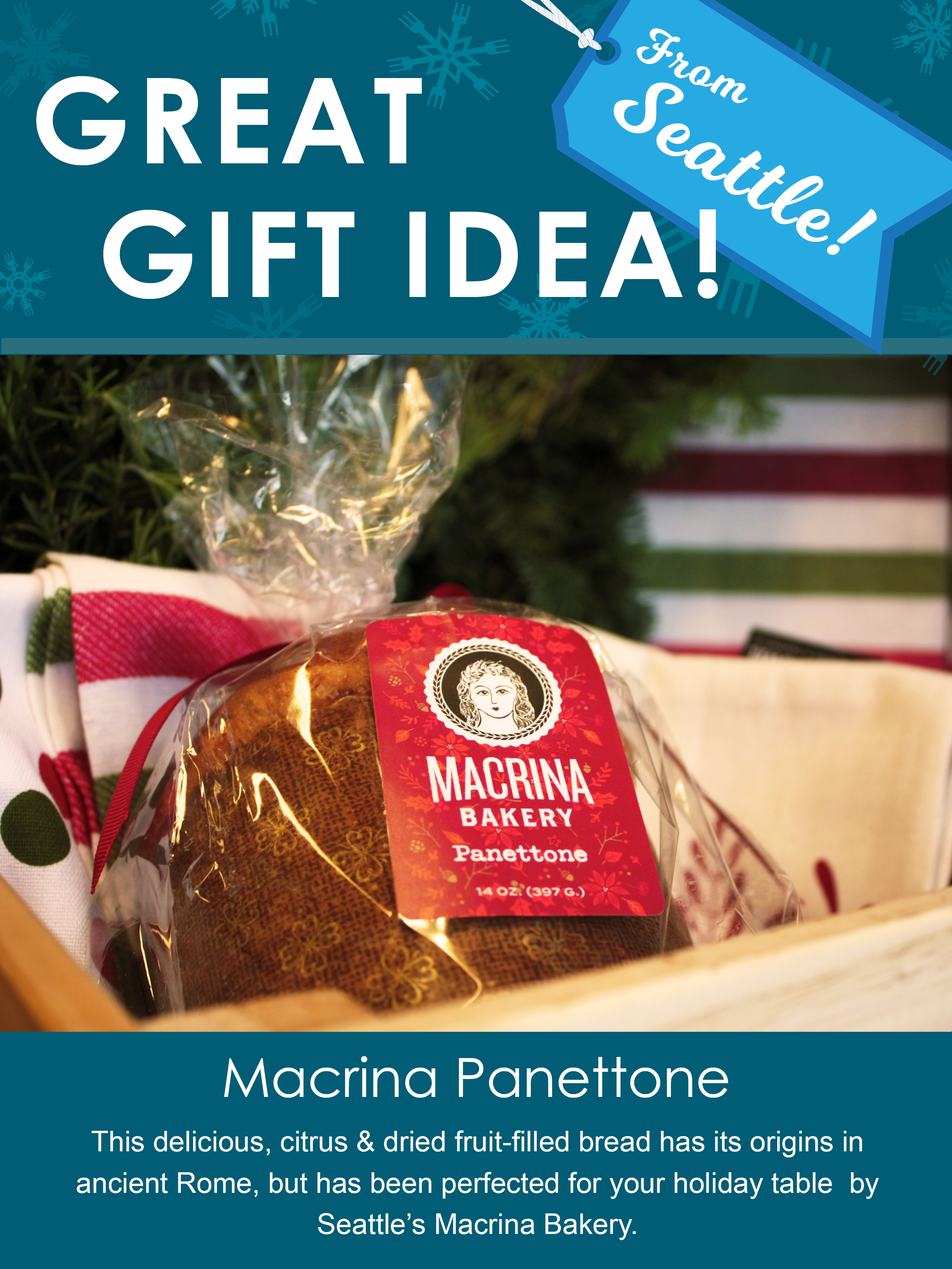 Macrina Bakery’s Panettone Looking for a new holiday tradition? Try one of the most ancient ones around… Panettone from Macrina Bakery! It's a sweet bread stuffed with raisins and candied orange and lemon peel that originated in Milan, Italy |