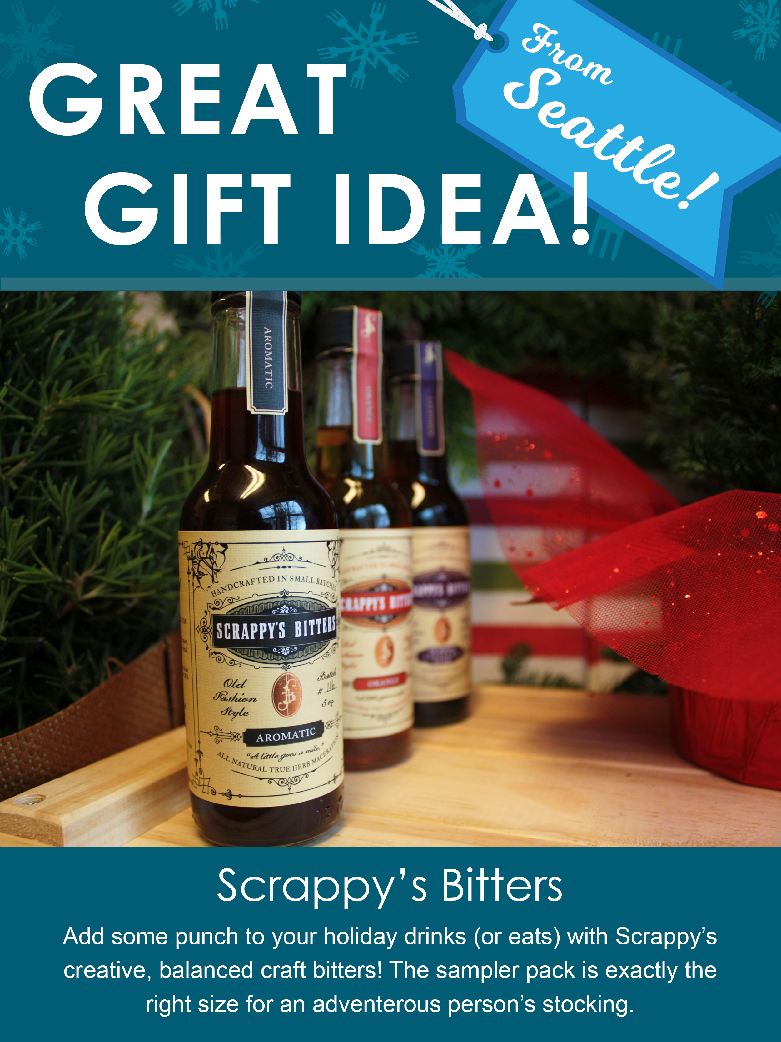 If you have an aspiring cocktail connoisseur in your life, consider the gift of a Classic Bitters Mini Set from Scrappy’s Bitters. It contains Seattle bartender Miles Thomas' unique interpretation of four time-honored bitters, plus a recipe card inside each box to get you started on your cocktail adventure! |