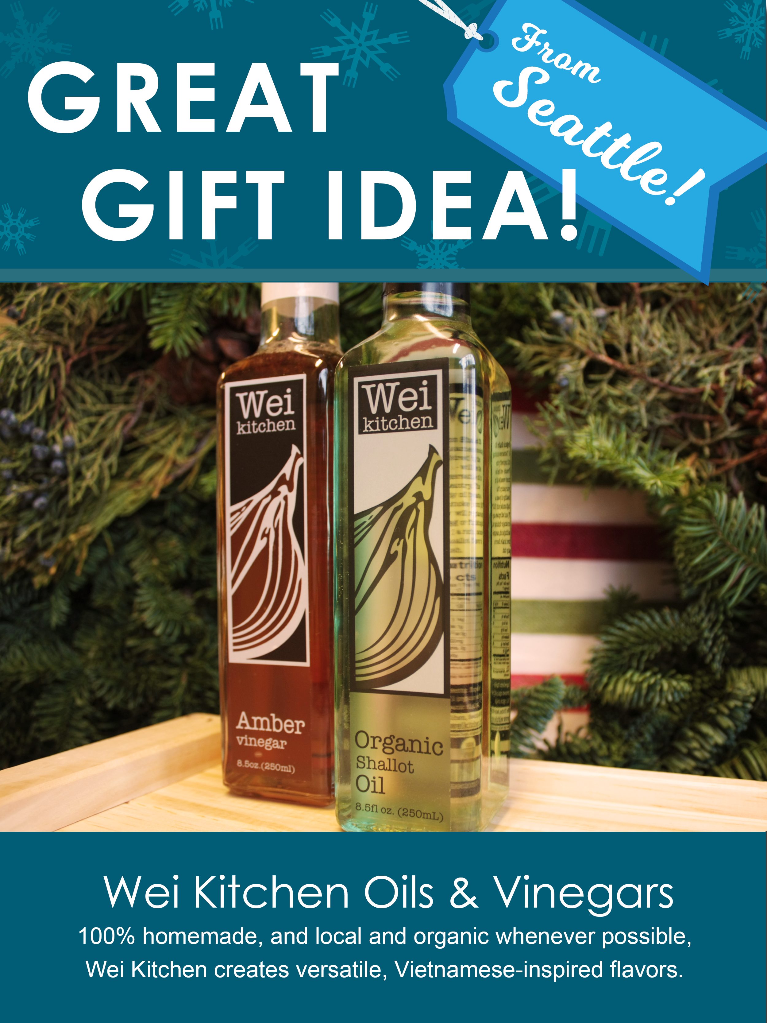 Handmade in Seattle in small batches, this Vietnamese-flavor-inspired oils and vinegar serve as great cooking products as well as condiments for any meal. Give Wei Kitchen’s Oils & Vinegar and enhance the pantry of someone you love! |