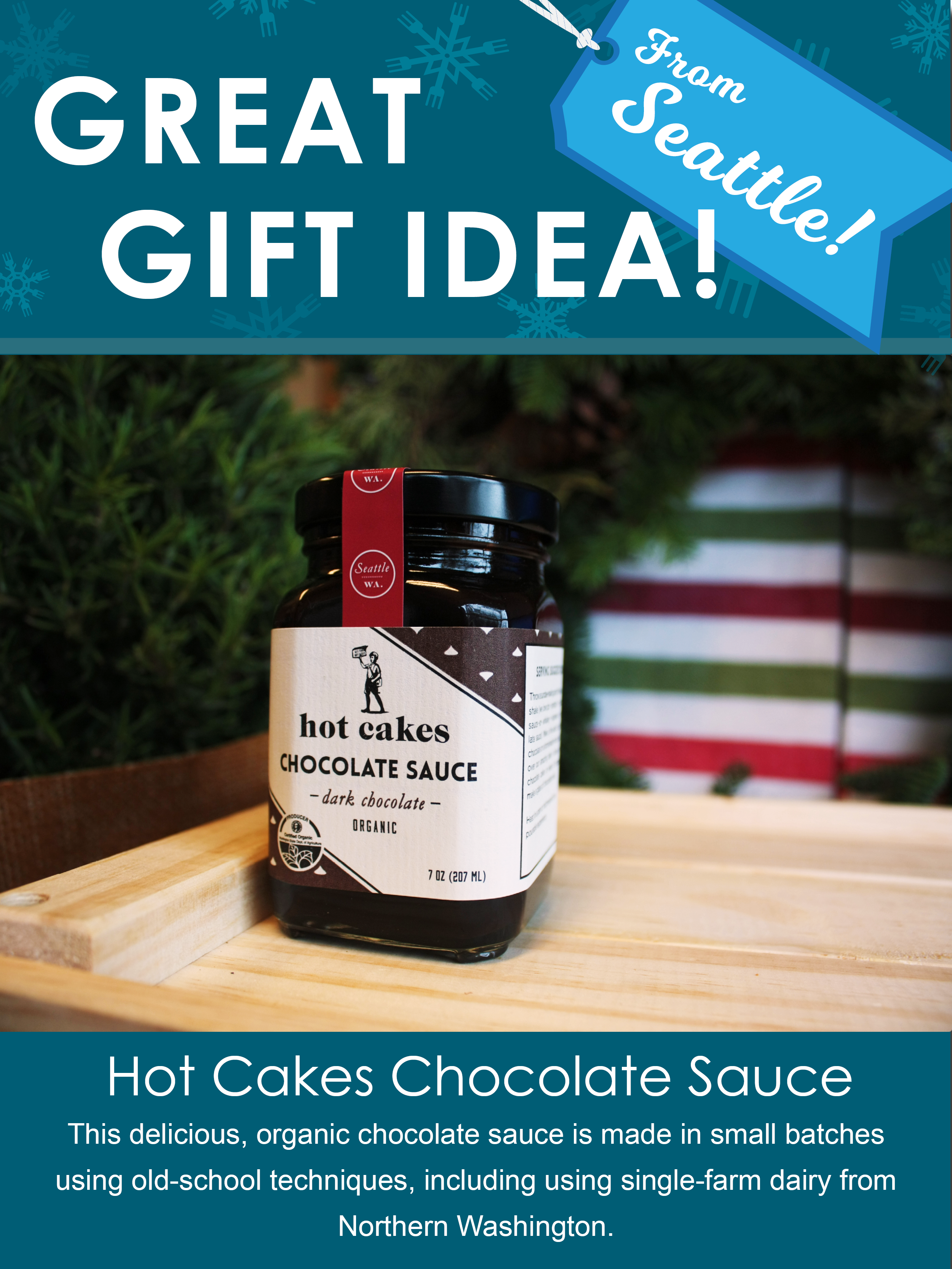 Can you buy love in a jar? Science may never know, but even scientists would do well to give the gift of Hot Cakes Dark Chocolate Sauce! Seattle’s own Hot Cakes Molten Chocolate Cakery has made available their small-batch dark chocolate sauce for you to place in the stocking of someone you treasure. |