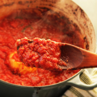 Great sauce starts with great ingredients. Use the best whole peeled canned tomatoes you can find, preferably San Marzano D.O.P. tomatoes.