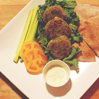 When summer is here, we’re thinking bon fires, grilling, picnics, getting out on the water, all that good stuff. The warm weather also tends to impact our eating habits to lighter, cooler, more veggie-filled fare. If you’re looking for a healthy, fun, summertime meal idea to please a crowd, look no further! This recipe was created from my love of falafel and a desire to put kale in everything I possibly could. It is slightly spicy, light, vegan, gluten free, and adapts well to change. Falafels may also be fried or baked.
