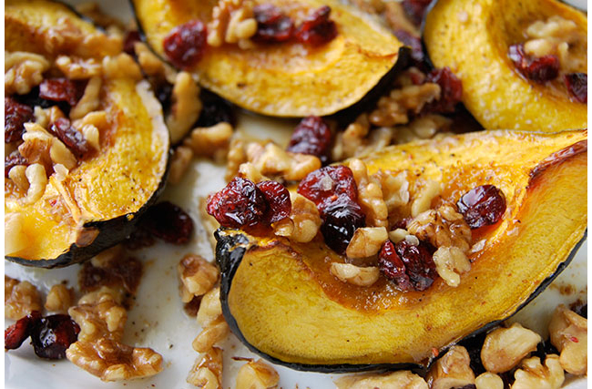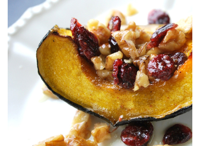 Roast acorn squash in the oven and top with butter, crunchy walnuts and sweet cranberries. It's stunning on the table and a definite crowd-pleaser. The squash itself takes just about an hour--not bad, since there really isn’t much hands-on time required at all.